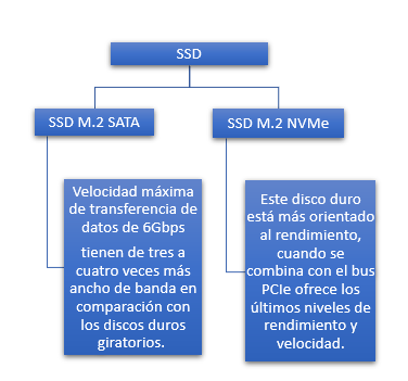 Entre este SSD M.2 se desglosan otros 2 tipos, basados en SATA y NVMe.